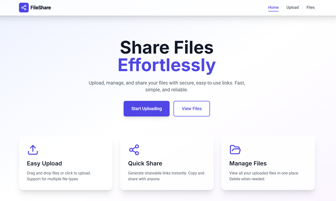 Fast and simple file sharing app to upload and share files with secure, time-limited links